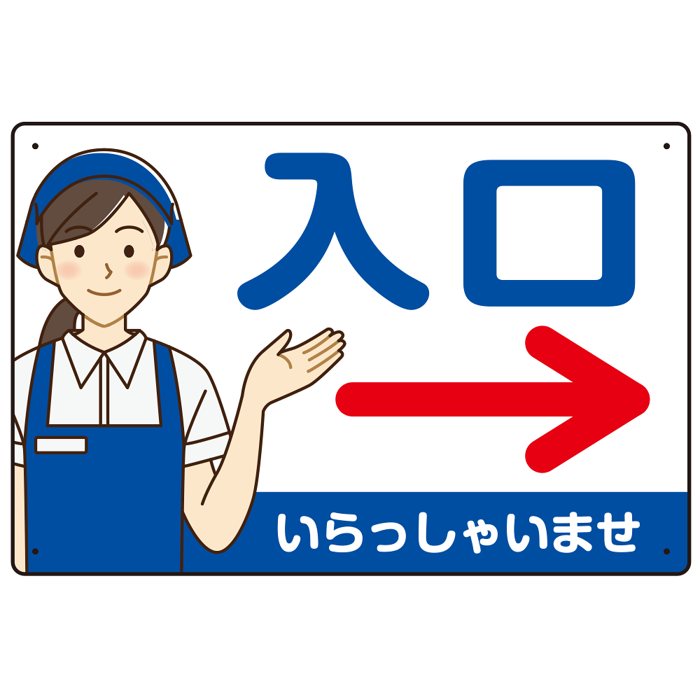 商品説明:飲食店・スーパー向け入口案内サイン エプロン女性イラスト オリジナル プレート看板 ブルー(右矢印) W450×H300 エコユニボード (SP-SMD581CR-45x30U)