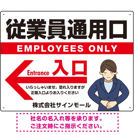 - 矢印付き従業員通用口 スーツ女性イラストデザイン オリジナルプレート看板 左矢印 W600×H450 エコユニボード (SP-SMD585L-60x45U)