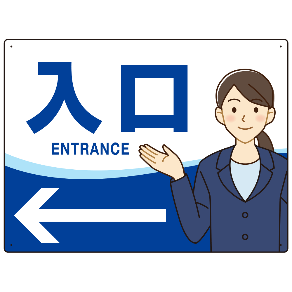 商品説明:会社・工場・オフィス向け入口案内 矢印付 女性イラストデザイン オリジナル プレート看板 ブルー/左矢印 W600×H450 エコユニボード (SP-SMD586BL-60x45U)
