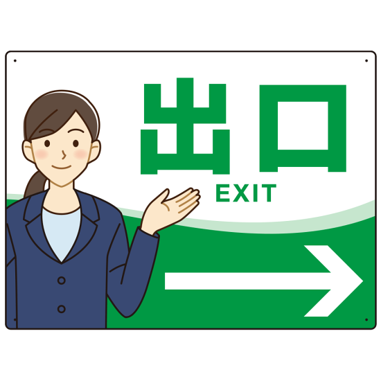 - 女性のイラストが目を引く分かりやすくスッキリとした出口誘導サイン。