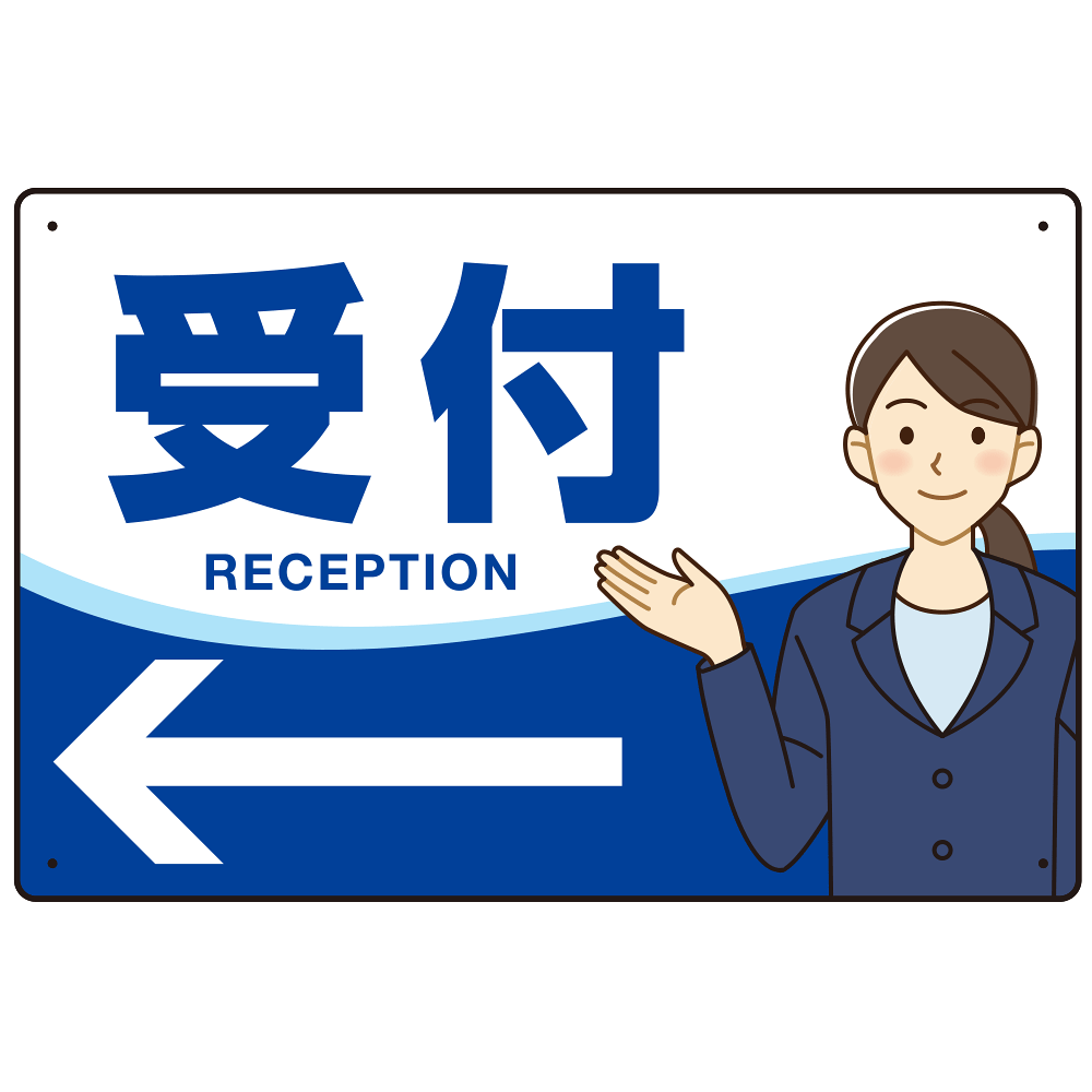会社・工場・オフィス向け受付案内 矢印付 女性イラストデザイン オリジナル プレート看板 ブルー/左矢印 W450×H300 エコユニボード (SP-SMD588BL-45x30U)