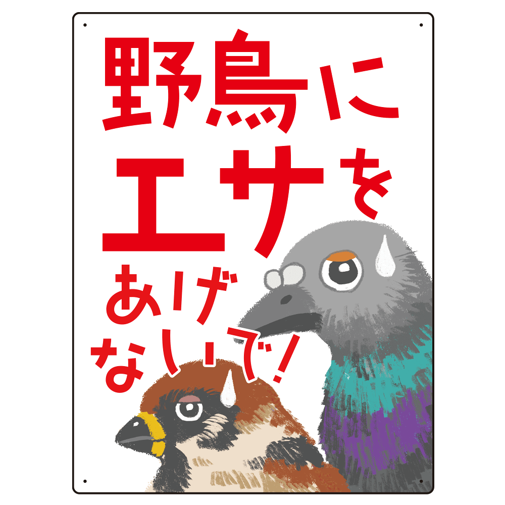 野鳥にエサをあげないで 困った野鳥イラスト付きデザイン プレート看板 600×450 エコユニボード (SP-SMD590-60x45U)
