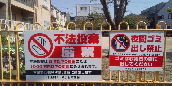 - 夜間ゴミ出し禁止+防犯カメラ作動中