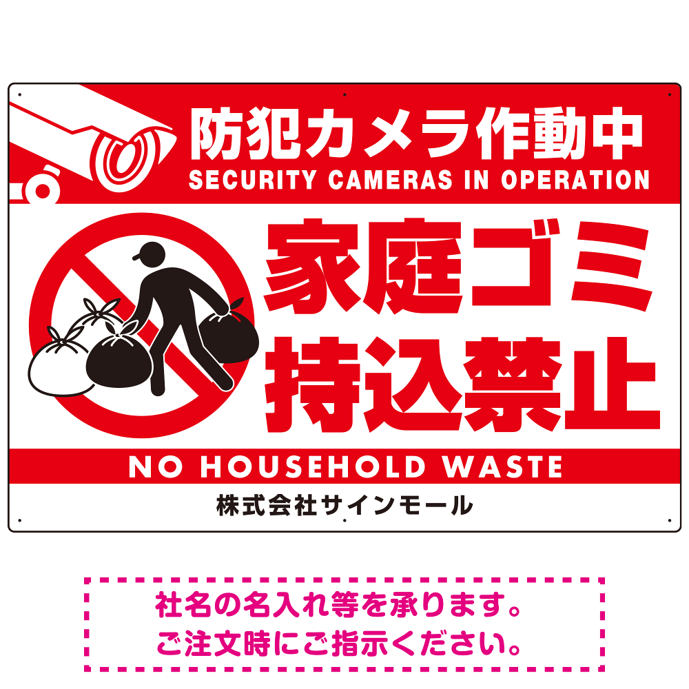 防犯カメラ作動中・家庭ゴミ持込禁止 オリジナル プレート看板 こっそり持ち込む人(白) アルミ複合板 W900×H600 (SP-SMD604-90x60A)