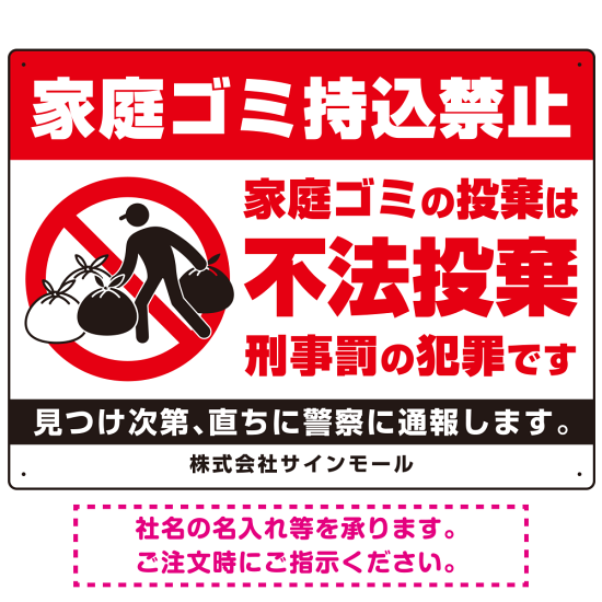 商品説明:家庭ゴミ持ち込み禁止 不法投棄警告デザイン プレート看板 こっそり持ち込む人 W600×H450 エコユニボード (SP-SMD605-60x45U)