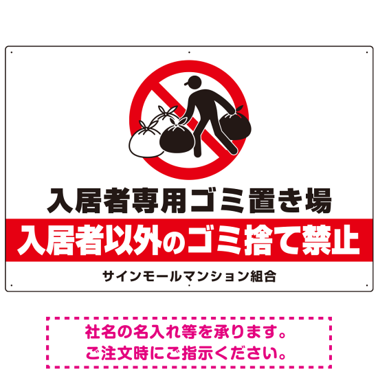入居者専用ゴミ置き場 大きなピクトデザイン プレート看板 こっそり持ち込む人 W900×H600 アルミ複合板 (SP-SMD609-90x60A)
