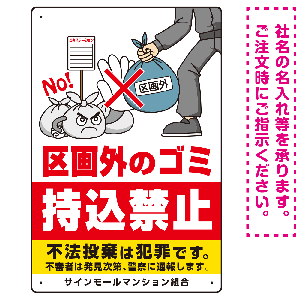 区画外ゴミ持込禁止 怒り顔ゴミイラストデザイン オリジナル プレート看板 タテ型 450×300 エコユニボード (SP-SMD614-45x30U)