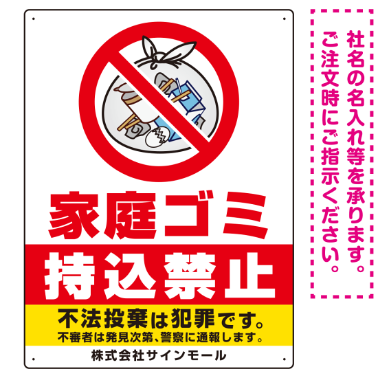 商品説明:家庭ゴミ持込禁止 The家庭ゴミの中身イラストデザイン オリジナル プレート看板 タテ型 600×450 エコユニボード (SP-SMD616-60x45U)