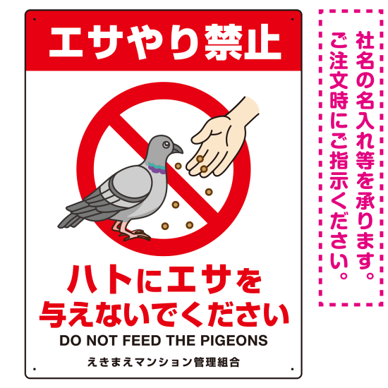 - シンプルなヨコ型と「エサやり禁止」と英語表記を追加したタテ型をご用意しております。