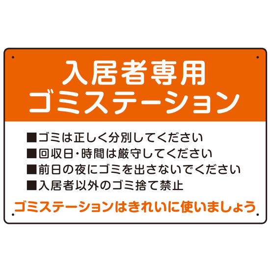 商品説明:入居者専用ゴミステーション スタンダードデザイン オリジナル プレート看板 オレンジ W450×H300 エコユニボード (SP-SMD629B-45x30U)