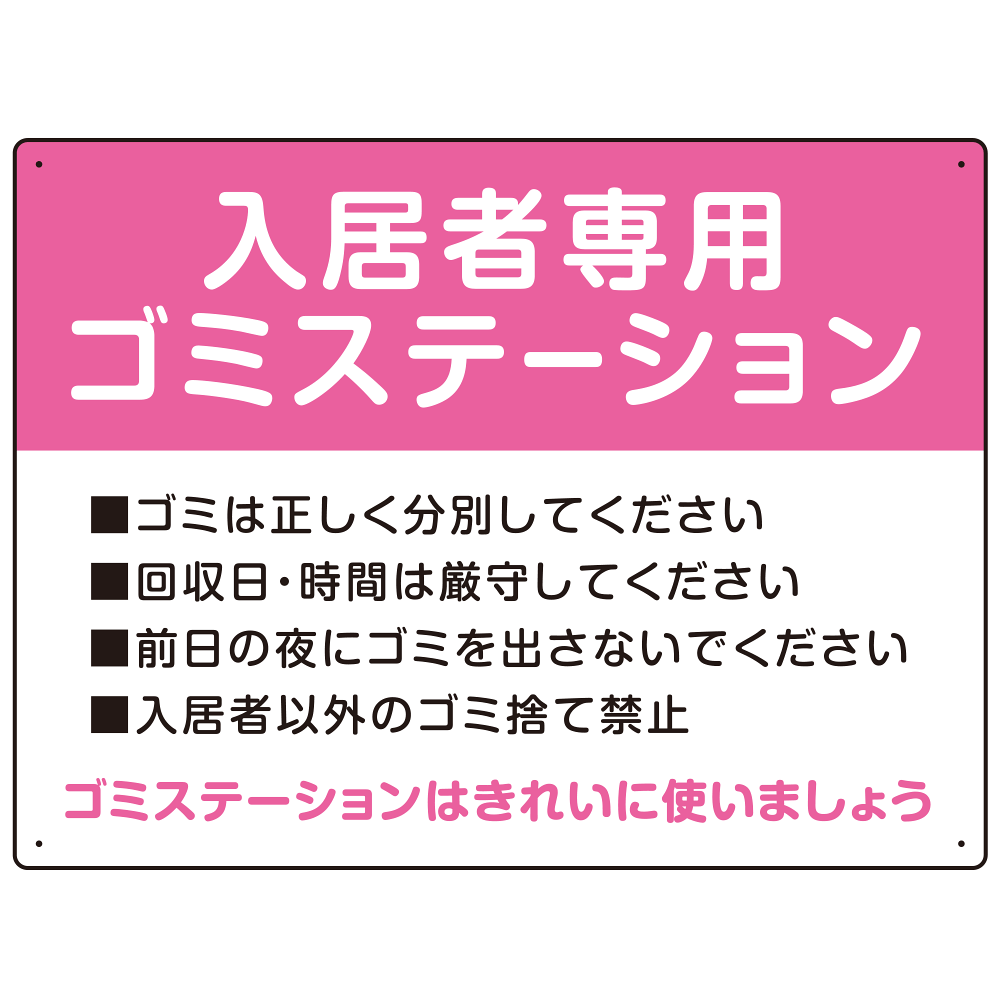 入居者専用ゴミステーション スタンダードデザイン オリジナル プレート看板 ピンク W600×H450 エコユニボード (SP-SMD629D-60x45U)