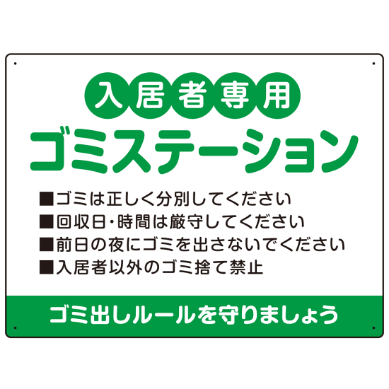 入居者専用ゴミステーション 丸ゴシック柔らかめデザイン オリジナル プレート看板 グリーン W600×H450 エコユニボード (SP-SMD630A-60x45U)