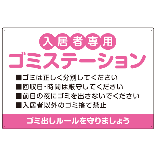 入居者専用ゴミステーション 丸ゴシック柔らかめデザイン オリジナル プレート看板 ピンク W900×H600 エコユニボード (SP-SMD630D-90x60U)