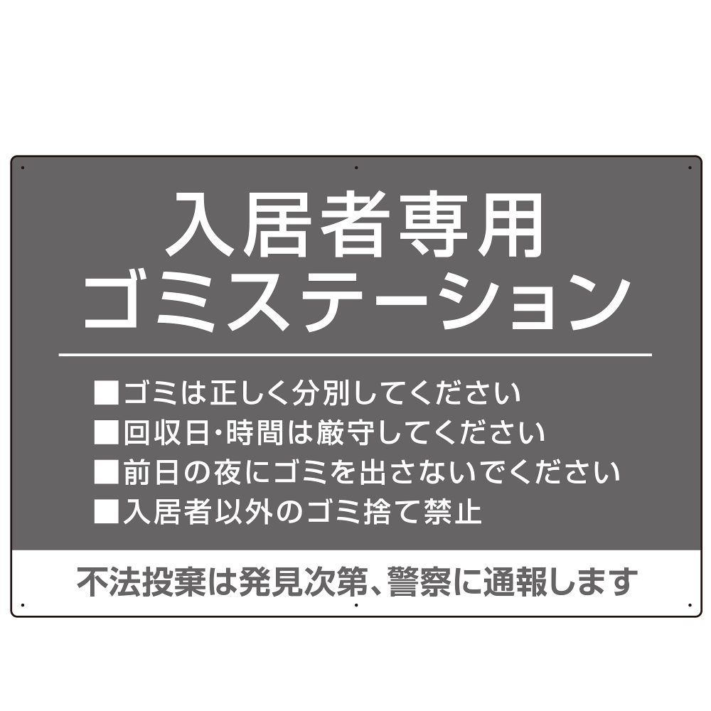 入居者専用ゴミステーション シックなデザイン オリジナル プレート看板 グレー W900×H600 エコユニボード (SP-SMD631A-90x60U)
