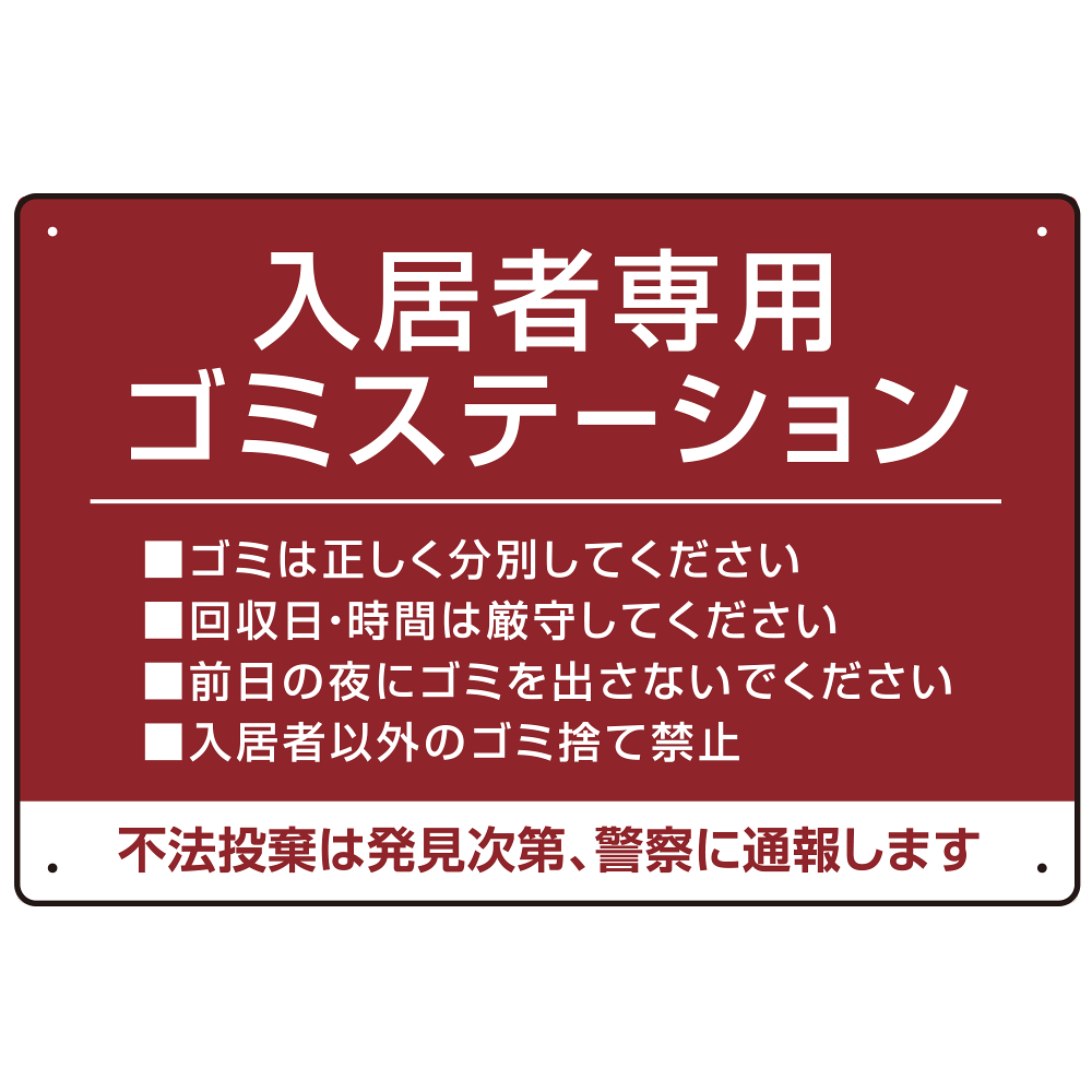 商品説明:入居者専用ゴミステーション シックなデザイン オリジナル プレート看板 エンジ W450×H300 エコユニボード (SP-SMD631D-45x30U)
