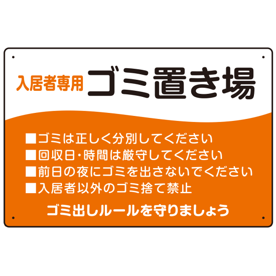 入居者専用ゴミ置き場 ウェーブデザイン オリジナル プレート看板 オレンジ W450×H300 エコユニボード (SP-SMD635B-45x30U)
