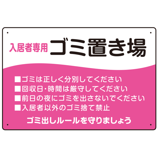 入居者専用ゴミ置き場 ウェーブデザイン オリジナル プレート看板 ピンク W450×H300 エコユニボード (SP-SMD635D-45x30U)