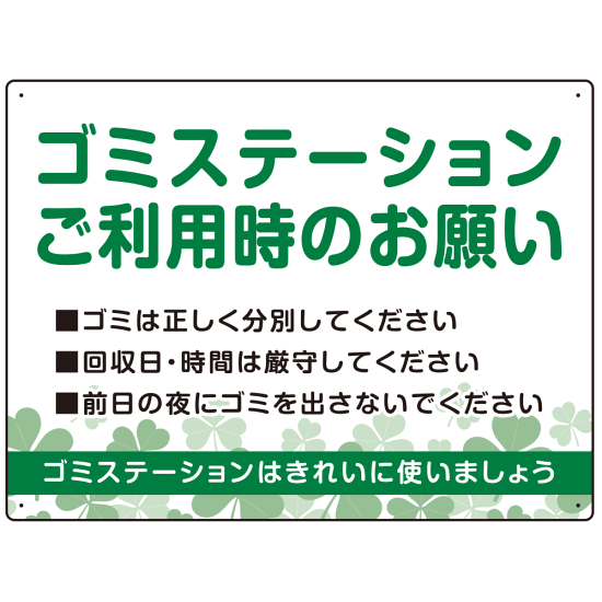 ゴミステーションご利用時のお願い グリーンデザイン オリジナル プレート看板 W600×H450 エコユニボード (SP-SMD633-60x45U)