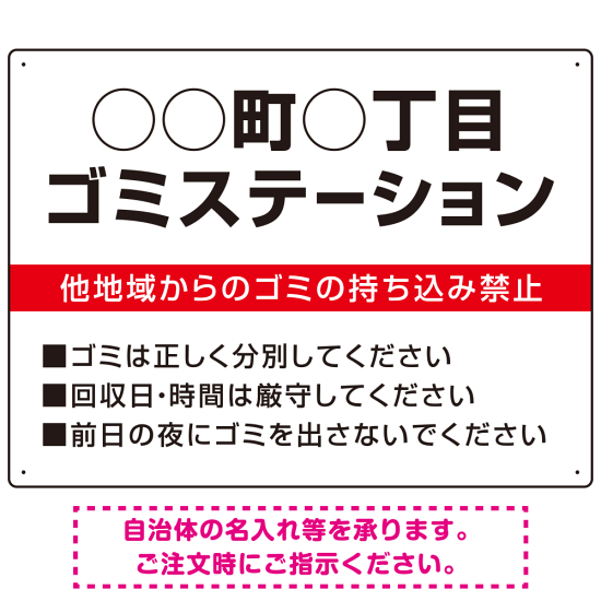 ◯◯町◯丁目 ゴミステーション オリジナル プレート看板 レッド W600×H450 アルミ複合板 (SP-SMD632A-60x45A)