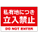 遠くからでもよく目立つ赤背景に白文字の私有地立入禁止看板。