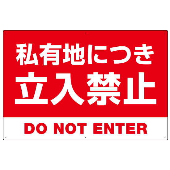 私有地につき立入禁止 赤背景に白デカ文字デザイン プレート看板 W900×H600 エコユニボード (SP-SMD638-90x60U)