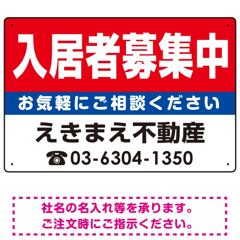 入居者募集中 レッド デザインA オリジナル プレート看板 W450×H300 マグネットシート