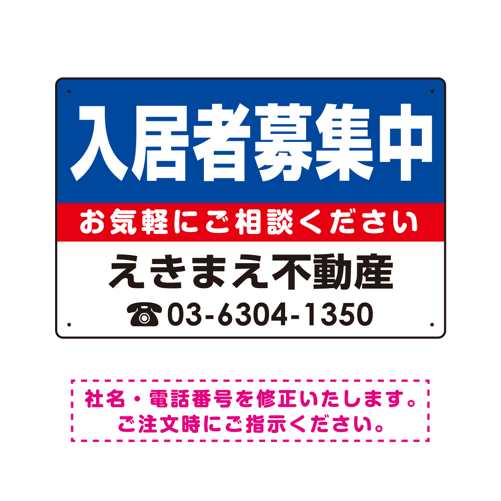 商品説明:入居者募集中 ブルー デザインB オリジナル プレート看板 W450×H300 マグネットシート