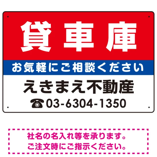 貸車庫 オリジナル プレート看板 赤背景 W450×H300 マグネットシート (SP-SMD166-45x30M)