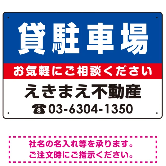 貸駐車場 オリジナル プレート看板 青背景 W450×H300 マグネットシート (SP-SMD207-45x30M)