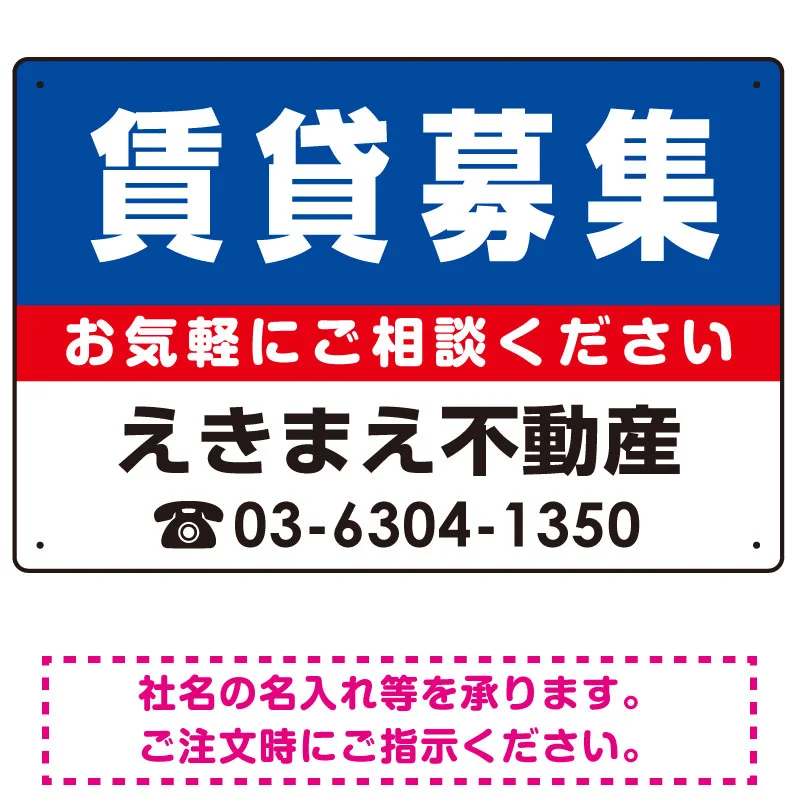 - 賃貸募集 オリジナル プレート看板 青背景 W450×H300 マグネットシート (SP-SMD219-45x30M)