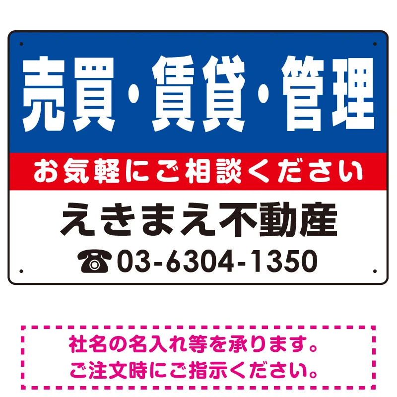 - 売買・賃貸・管理 オリジナル プレート看板 青背景 W450×H300 マグネットシート (SP-SMD223-45x30M)