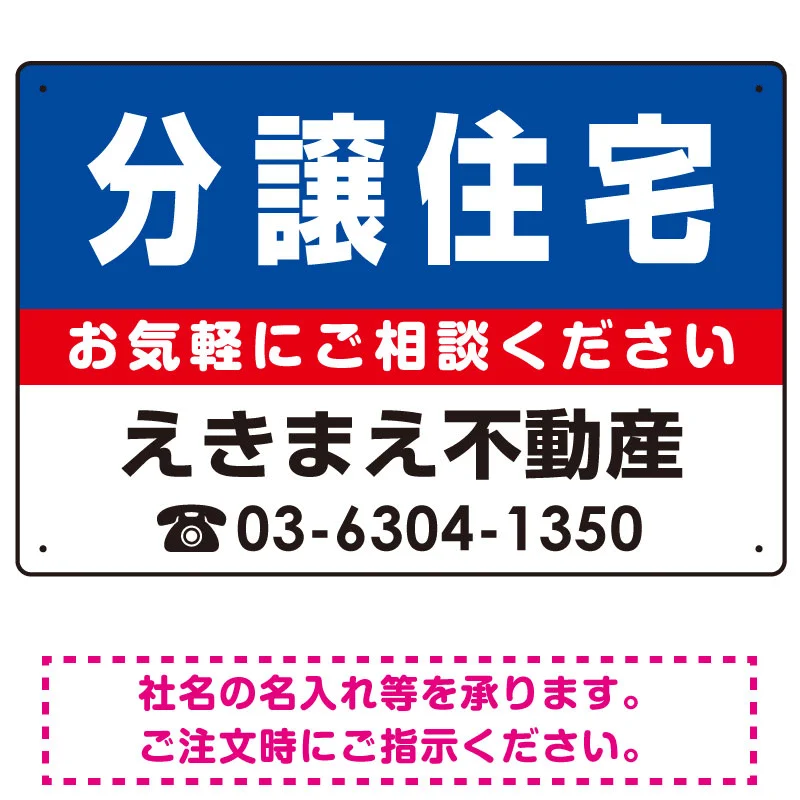 分譲住宅 オリジナル プレート看板 青背景 W450×H300 マグネットシート (SP-SMD225-45x30M)