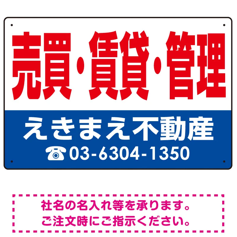 売買・賃貸・管理 オリジナル プレート看板 赤文字 W450×H300 マグネットシート (SP-SMD266-45x30M)