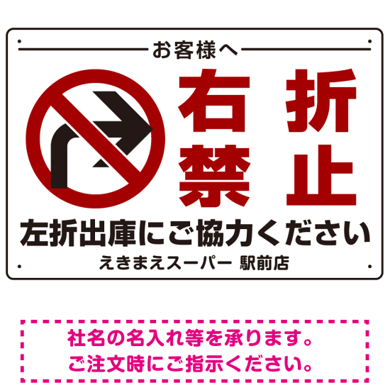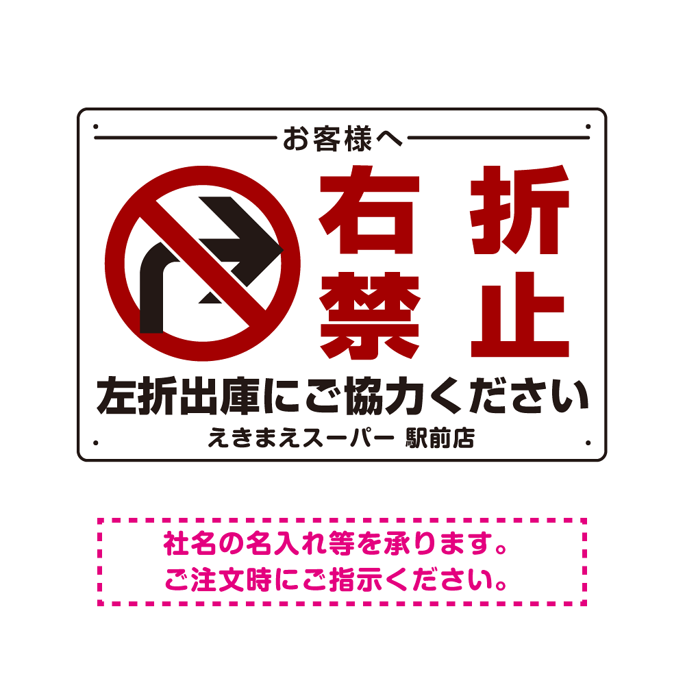 入店・出庫用 右折禁止 プレート看板 出庫案内 W450×H300 マグネットシート (SP-SMD317-45x30M)