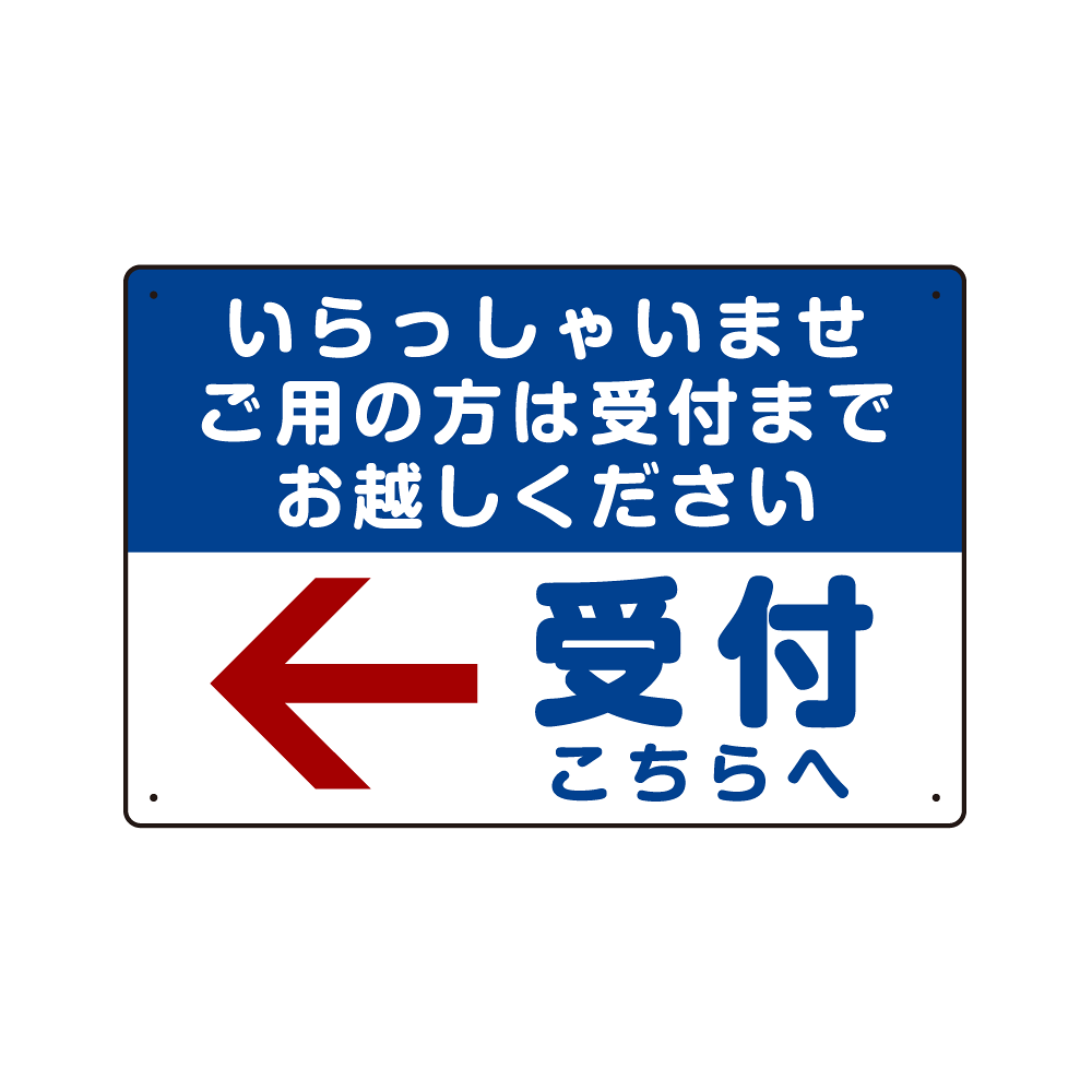 いらっしゃいませ・受付こちらへ プレート看板 左矢印 W450×H300 マグネットシート (SP-SMD320-45x30M)