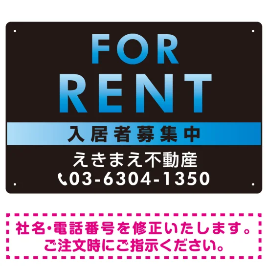 よくある質問:FOR RENT 入居者募集中 黒地/ブルーグラーデションタイトル オリジナル プレート看板 W450×H300 マグネットシート (SP-SMD410B-45x30M)