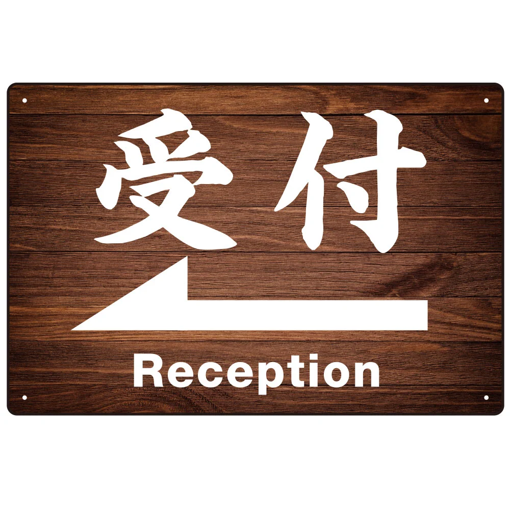 - 和風 濃い目の木目調にくっきり白文字 オリジナル プレート看板 受付/左矢印 W450×H300 マグネットシート (SP-SMD500L-45x30M)