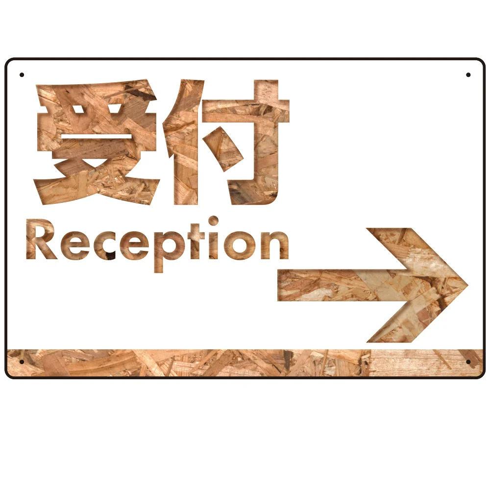 - 木目柄文字で誘導する出入りサイン オリジナル プレート看板 受付/右矢印 W450×H300 マグネットシート (SP-SMD522R-45x30M)