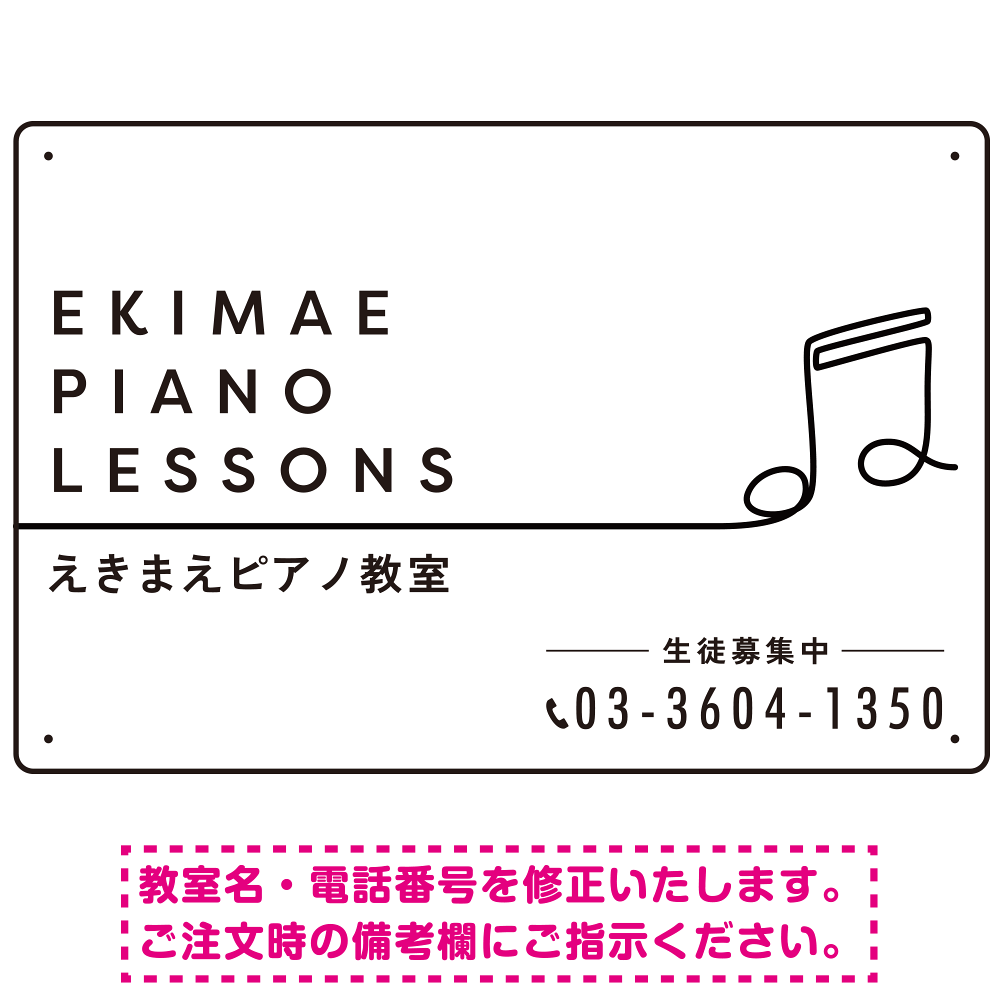 - ご希望の文字内容をご注文時の備考欄やメールやFAXにてご指示ください。※教室名・電話番号の修正費は料金に含まれております。