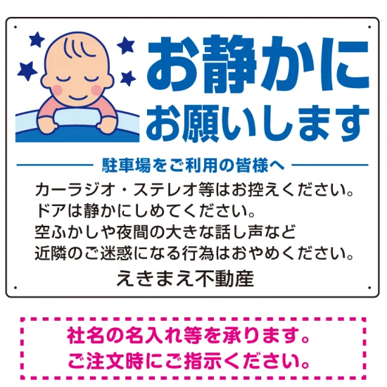 - 静かにお願いします 駐車場 オリジナル プレート看板 W600×H450 マグネットシート
