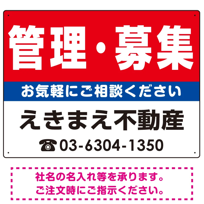 管理・募集 オリジナル プレート看板 赤背景 W600×H450 マグネットシート (SP-SMD186-60x45M)