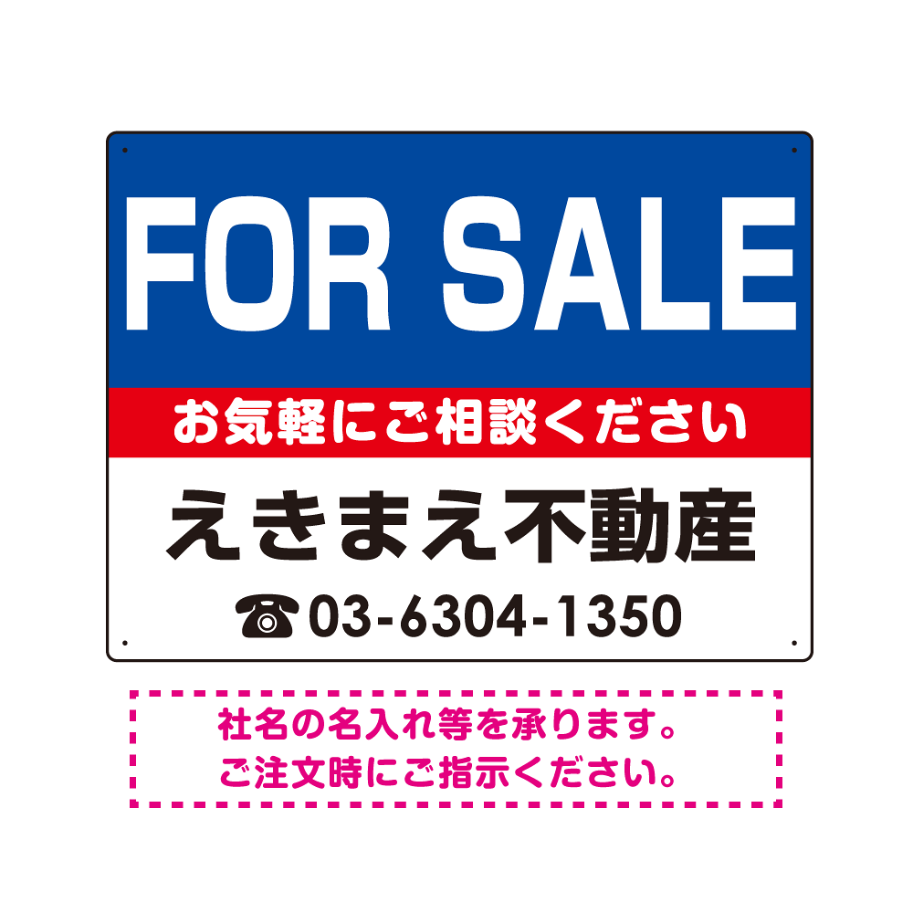 商品説明:FOR SALE オリジナル プレート看板 青背景 W600×H450 マグネットシート (SP-SMD199-60x45M)