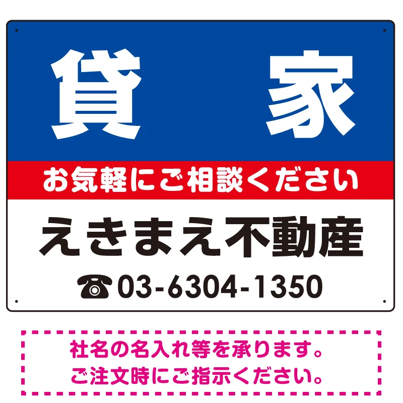 - 貸家 オリジナル プレート看板 青背景 W600×H450 マグネットシート (SP-SMD212-60x45M)