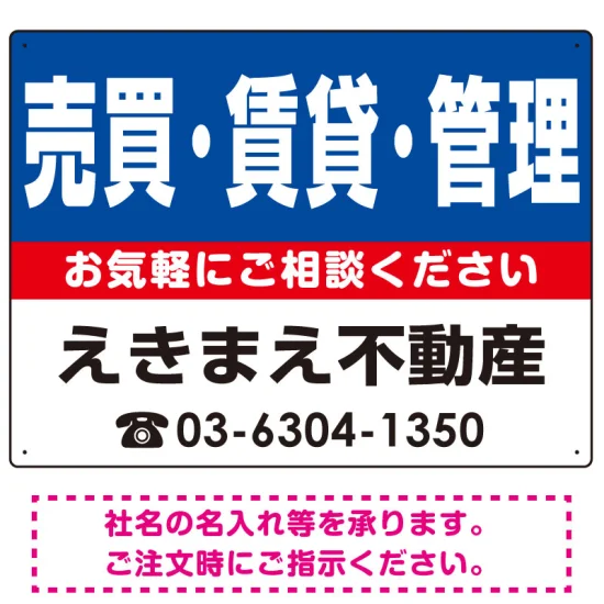 売買・賃貸・管理 オリジナル プレート看板 青背景 W600×H450 マグネットシート (SP-SMD223-60x45M)