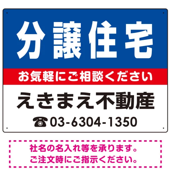 分譲住宅 オリジナル プレート看板 青背景 W600×H450 マグネットシート (SP-SMD225-60x45M)