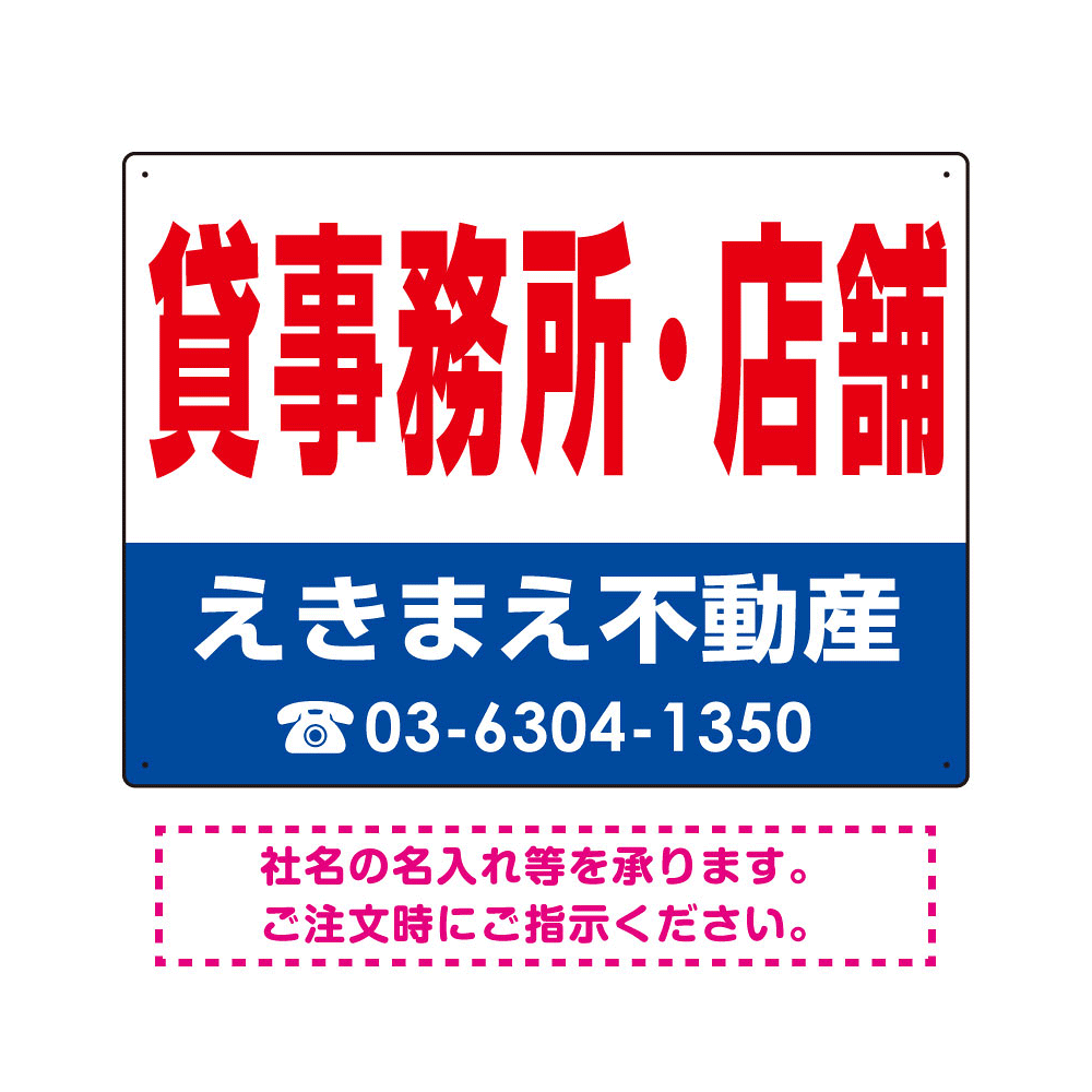 表示内容「貸事務所・店舗」不動産向けプレート看板。