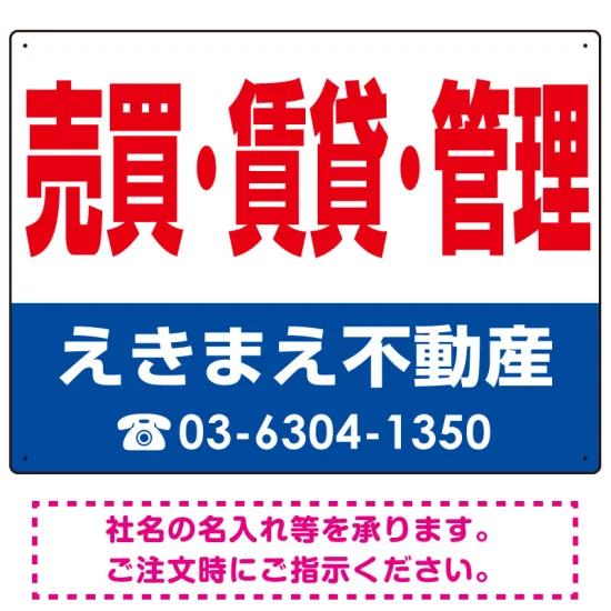 売買・賃貸・管理 オリジナル プレート看板 赤文字 W600×H450 マグネットシート (SP-SMD266-60x45M)