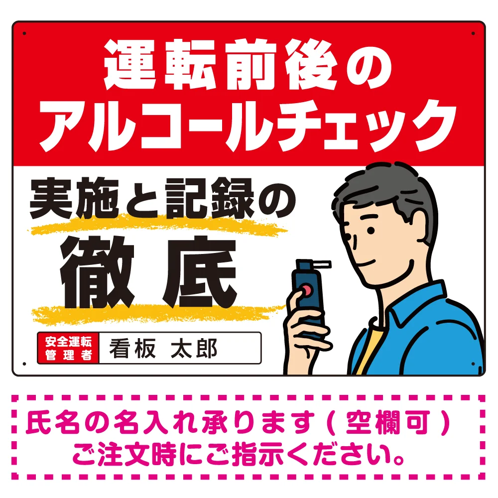 よくある質問:安全運転管理者枠付き飲酒運転防止・アルコールチェック啓蒙看板 管理と徹底 レッド オリジナル プレート看板 W600×H450 マグネットシート