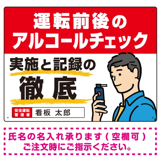 安全運転管理者枠付き飲酒運転防止・アルコールチェック啓蒙看板 管理と徹底 レッド オリジナル プレート看板 W600×H450 マグネットシート
