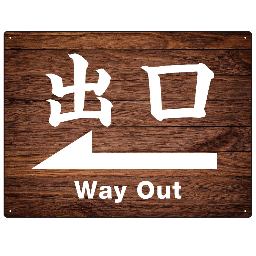 和風 濃い目の木目調にくっきり白文字 オリジナル プレート看板 出口/左矢印 W600×H450 マグネットシート (SP-SMD499L-60x45M)